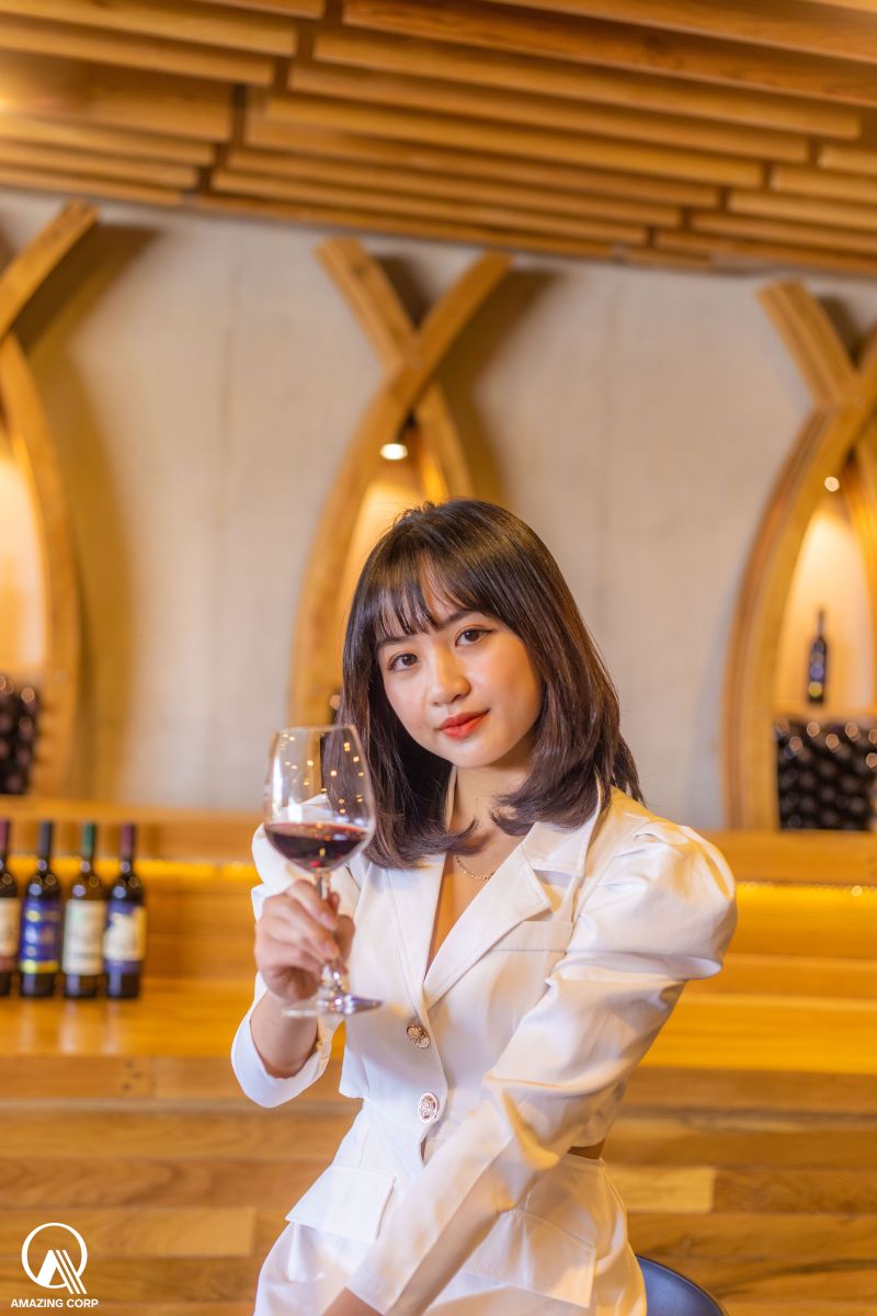 Trải nghiệm thử nếm 1 ly rượu vang.
